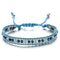 Dazzling across a single layer of weaved braid is a geometric arrangement of shiny stones that offer a scintillating look in this bracelet.
